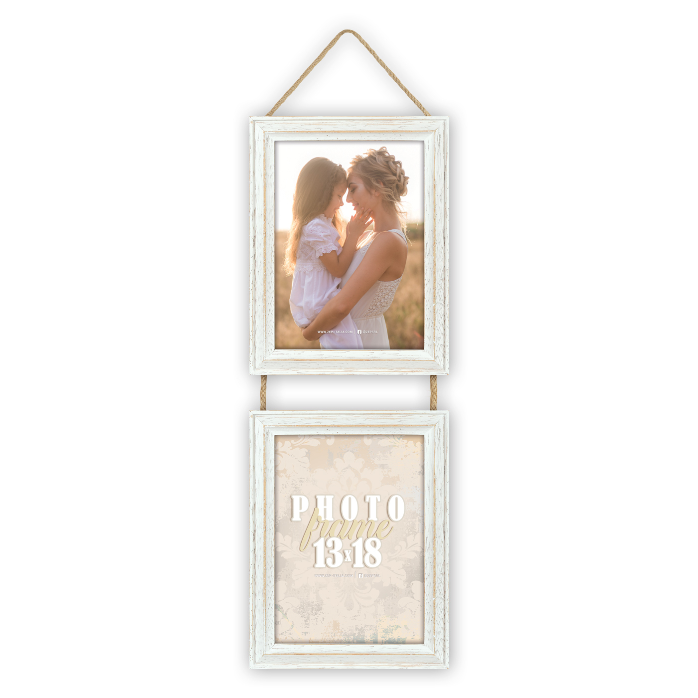 Rama foto ROSEL 2V este alegerea ideală pentru a pune în valoare amintirile tale preferate. Realizată din lemn de calitate, cu finisaj alb cu efect vintage, această ramă multifoto adaugă un plus de rafinament oricărui spațiu, fie că este vorba despre locuință sau birou.